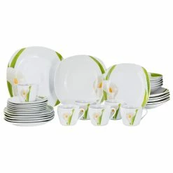 Null Kombiservice Harmony 30-teilig Eckig Porzellan Für 6 Personen Weiß Geschwungene Kanten