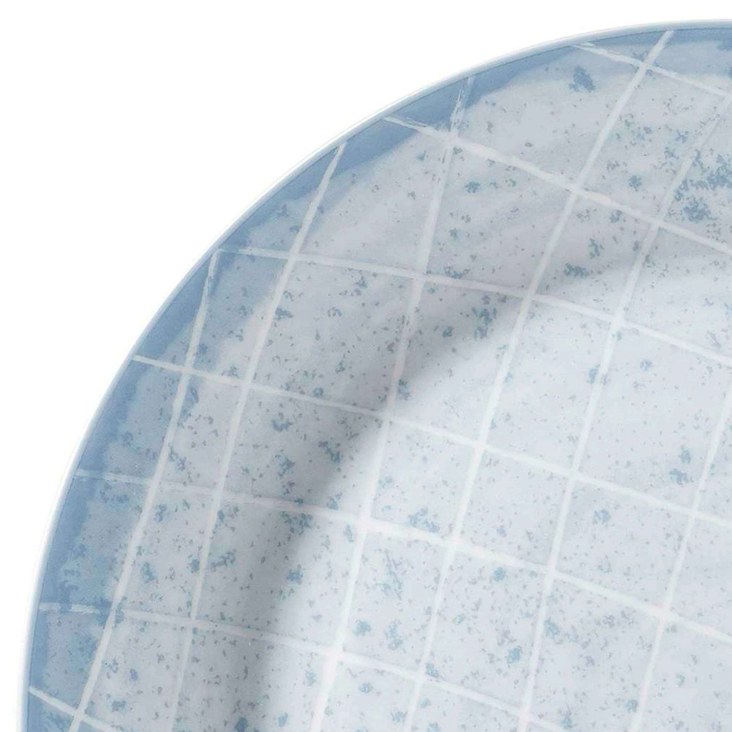 - Das hübsche Set überzeugt durch einen hell- und mittelblau gesprenkelten Untergrund, der von weißen Linien durchzogen wird und so ein maritimes Kachel-Design entsteht