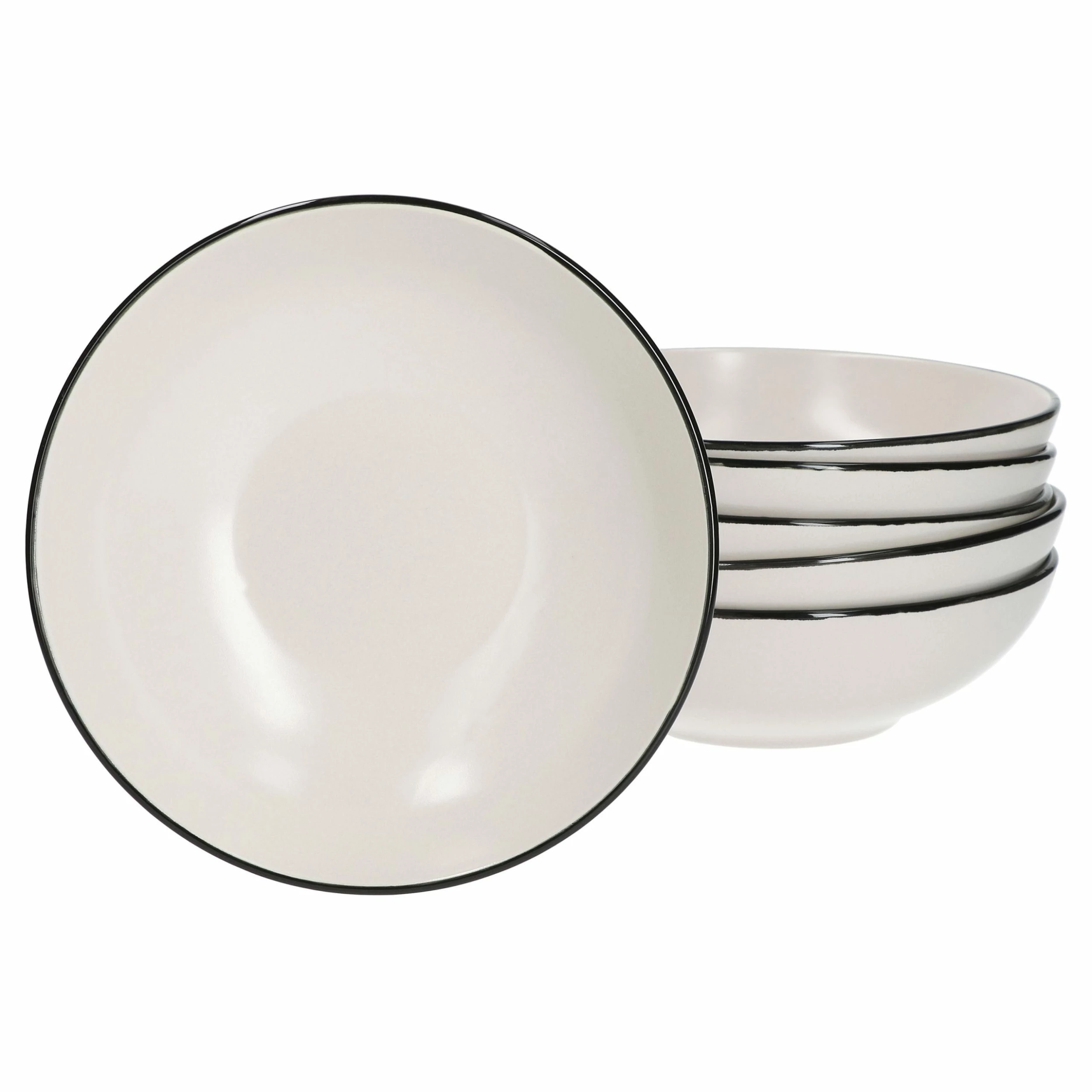 Mit dem schlichten und eleganten Kombiservice Campo von Van Well verleihen Sie Ihrer gedeckten Tafel eine ganz persönliche Note. Das beidseitig in creme gehaltene Geschirr wird durch eine schwarze Line am Rand perfekt abgerundet und fügt sich so – durch seine puristische Optik – in jede Tischdeko ein. Die matte Glasur vervollständigt die natürliche Gestaltung der Serie.