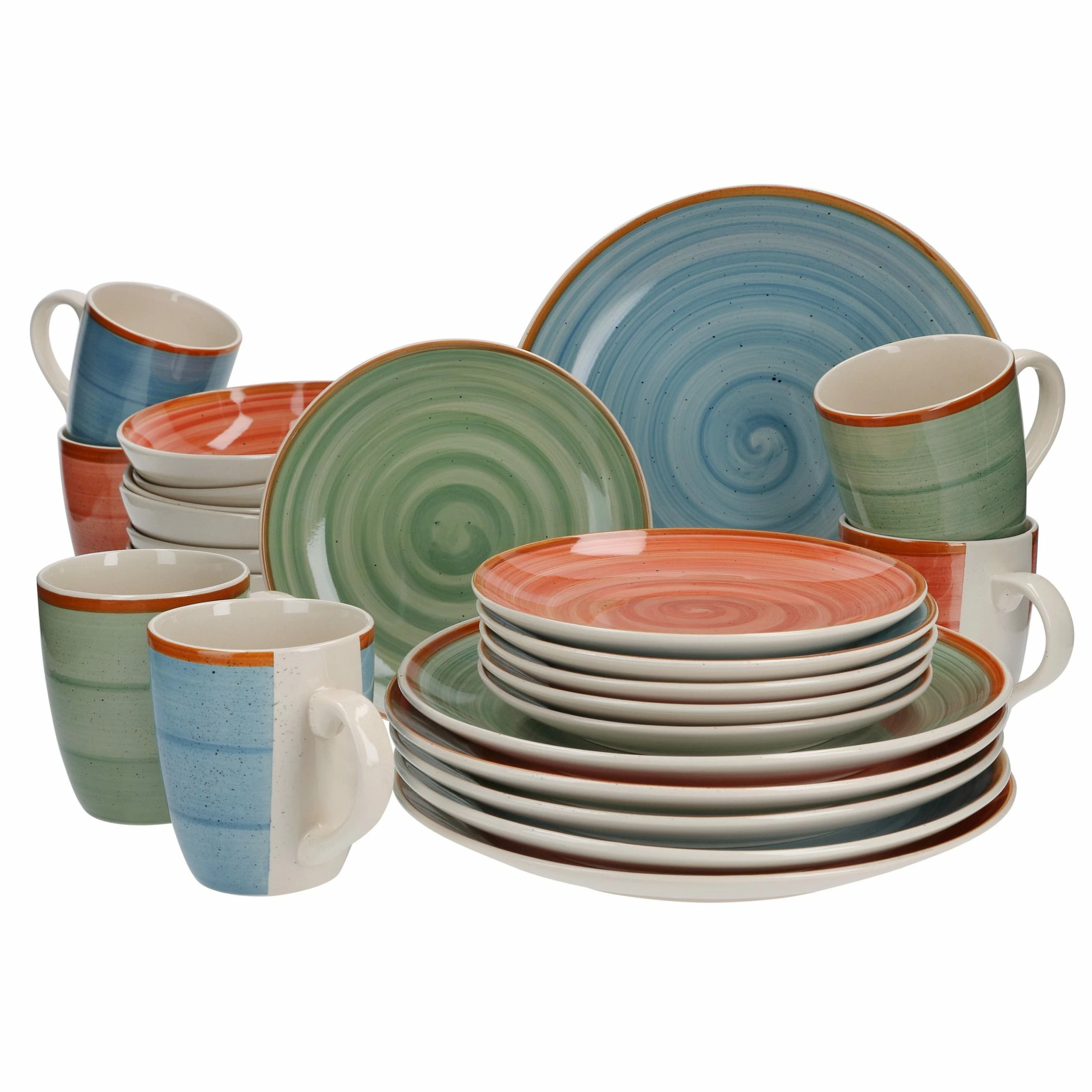 Magnifica ist eine trendige Geschirrkollektion aus dem Hause Van Well. Kreisende Strudeldekore in drei verschiedenen Farben zieren die 24 Einzelteile des vorteilhaften Geschirrsets. Setzen Sie stilvolle Akzente bei Tisch und erfreuen Sie sich und liebe Gäste an dem Steingut in schwerer Qualität!