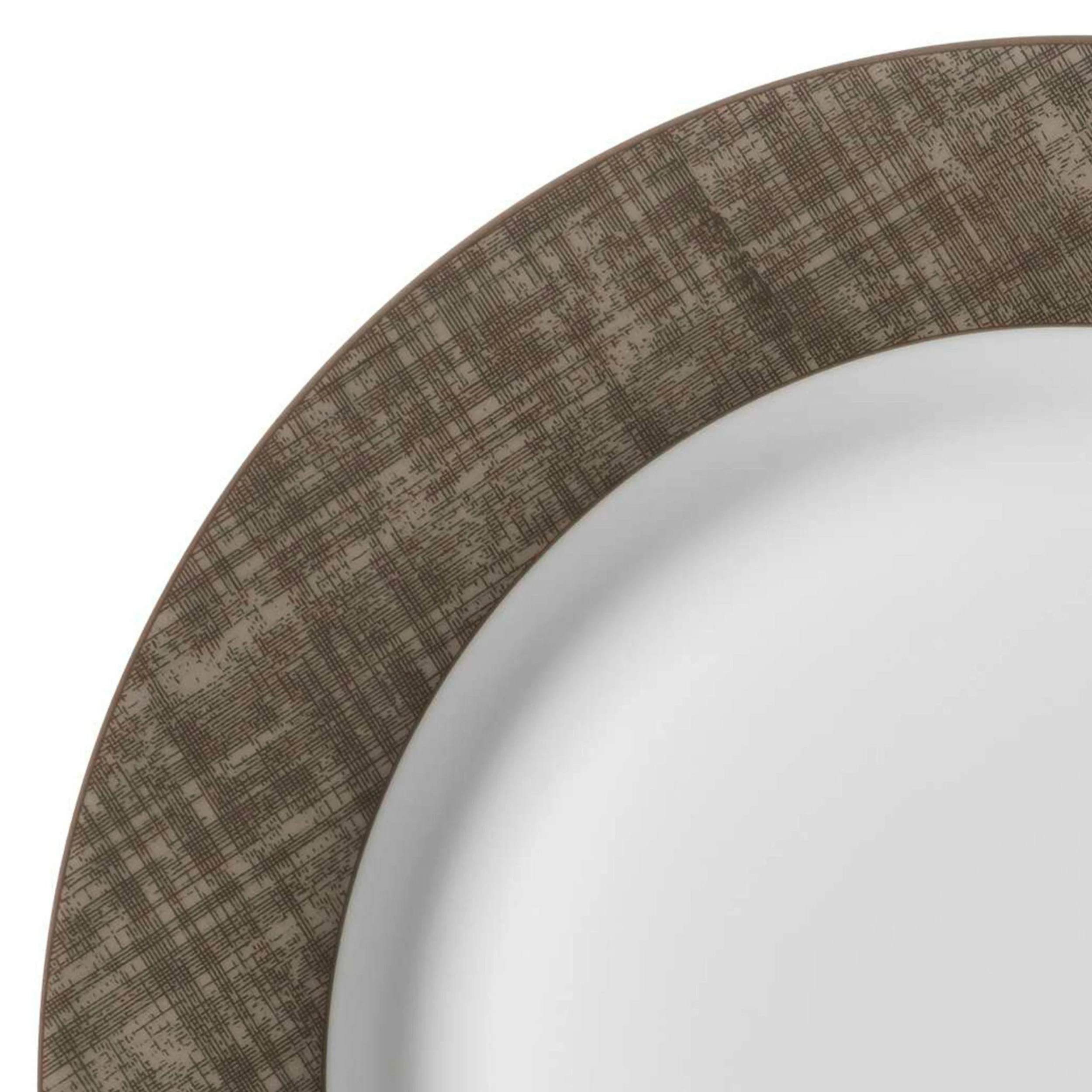 Genießen Sie Ihre Leibspeise von diesen Speisetellern mit auffälligem braunen Gittermuster.
