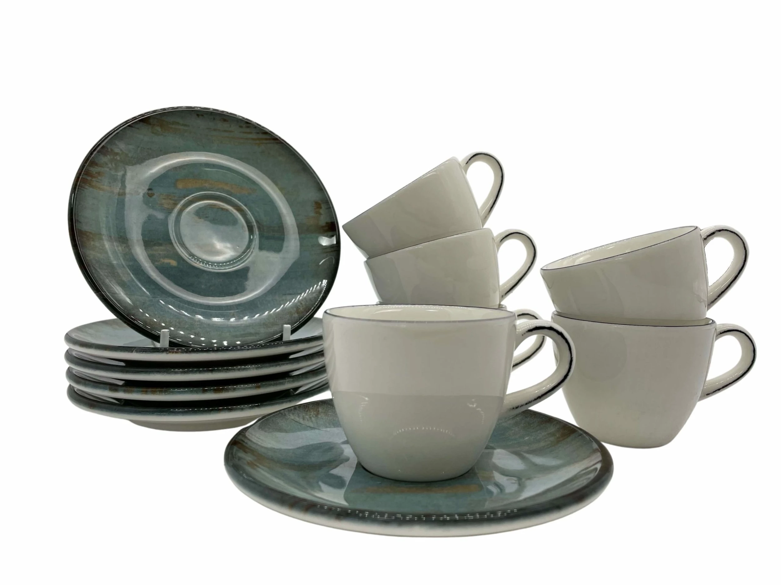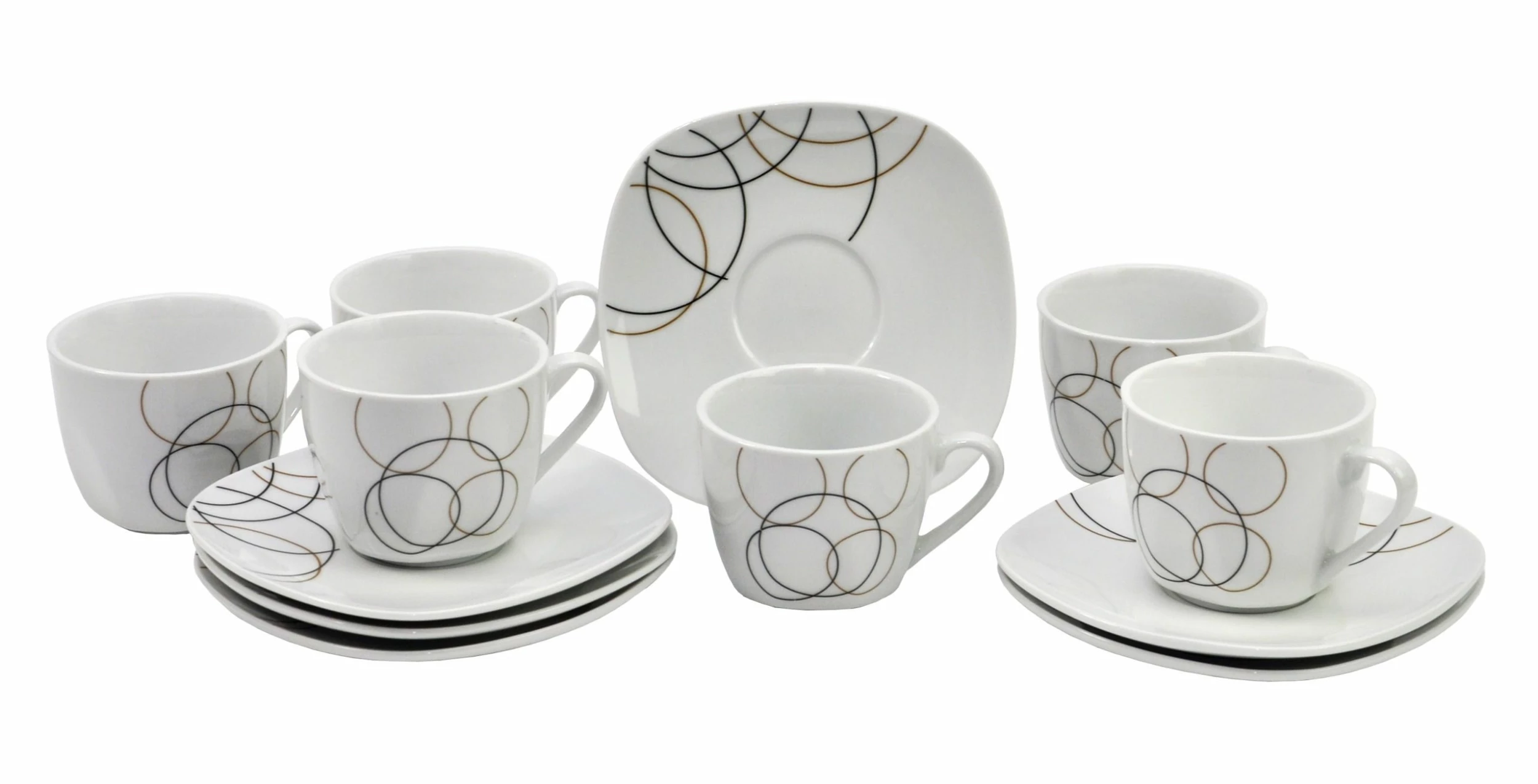 Diese Ergänzungen sind aus weißem Porzellan mit braun/schwarzem Kreisdekor und für den täglichen Gebrauch, sowie für die festlich gedeckte Tafel bestens geeignet.