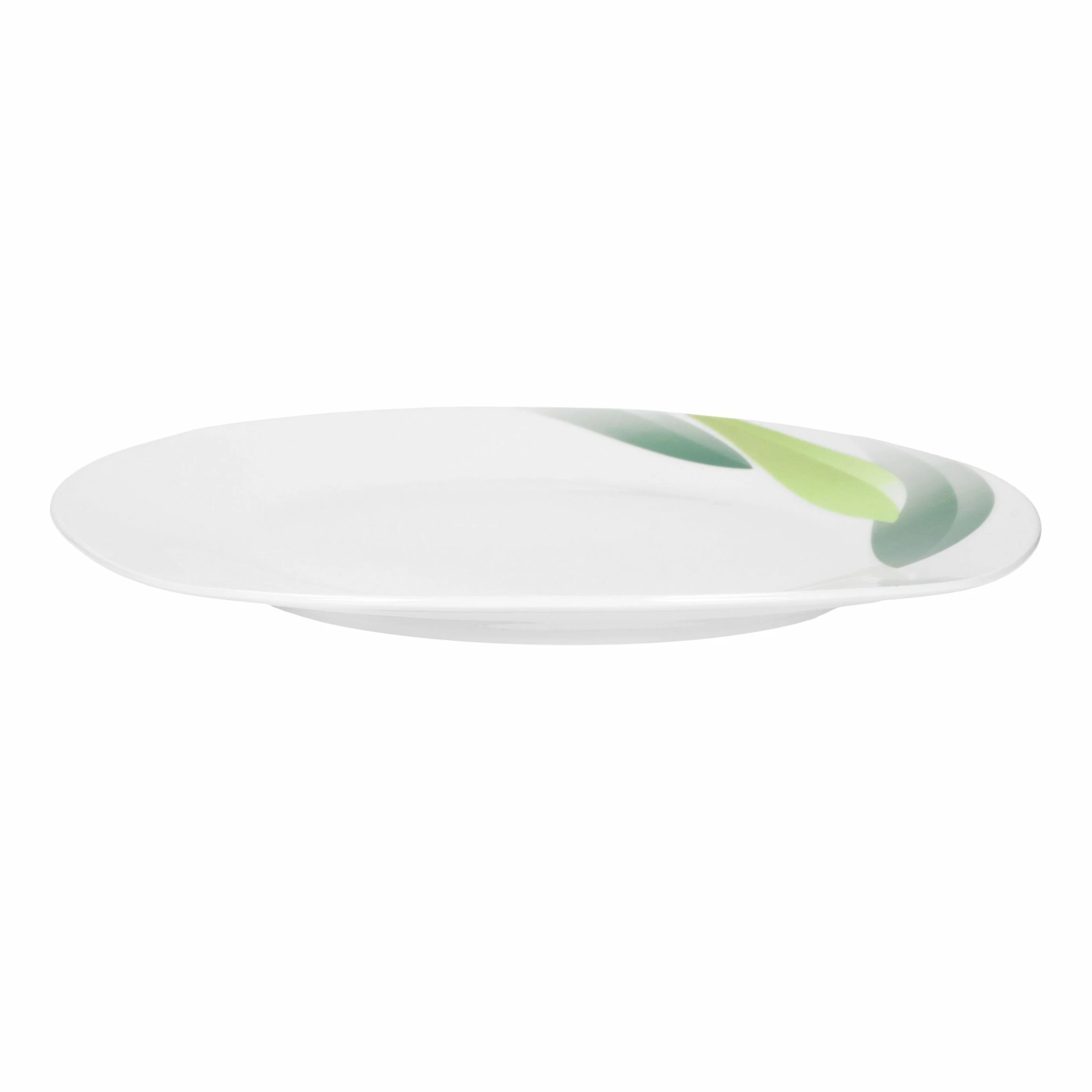 Siena ist eine moderne Geschirrkollektion aus dem Hause Van Well. Längliche Blätter schmiegen sich sanft aneinander und zieren in zwei verschiedenen Grüntönen die großen Speiseteller aus lichtgrauem Porzellan. Freuen Sie sich auf ein gemeinsames Mahl mit Ihren Liebsten und setzen Sie dabei stilvolle Akzente auf der festlich-gedeckten Tafel!