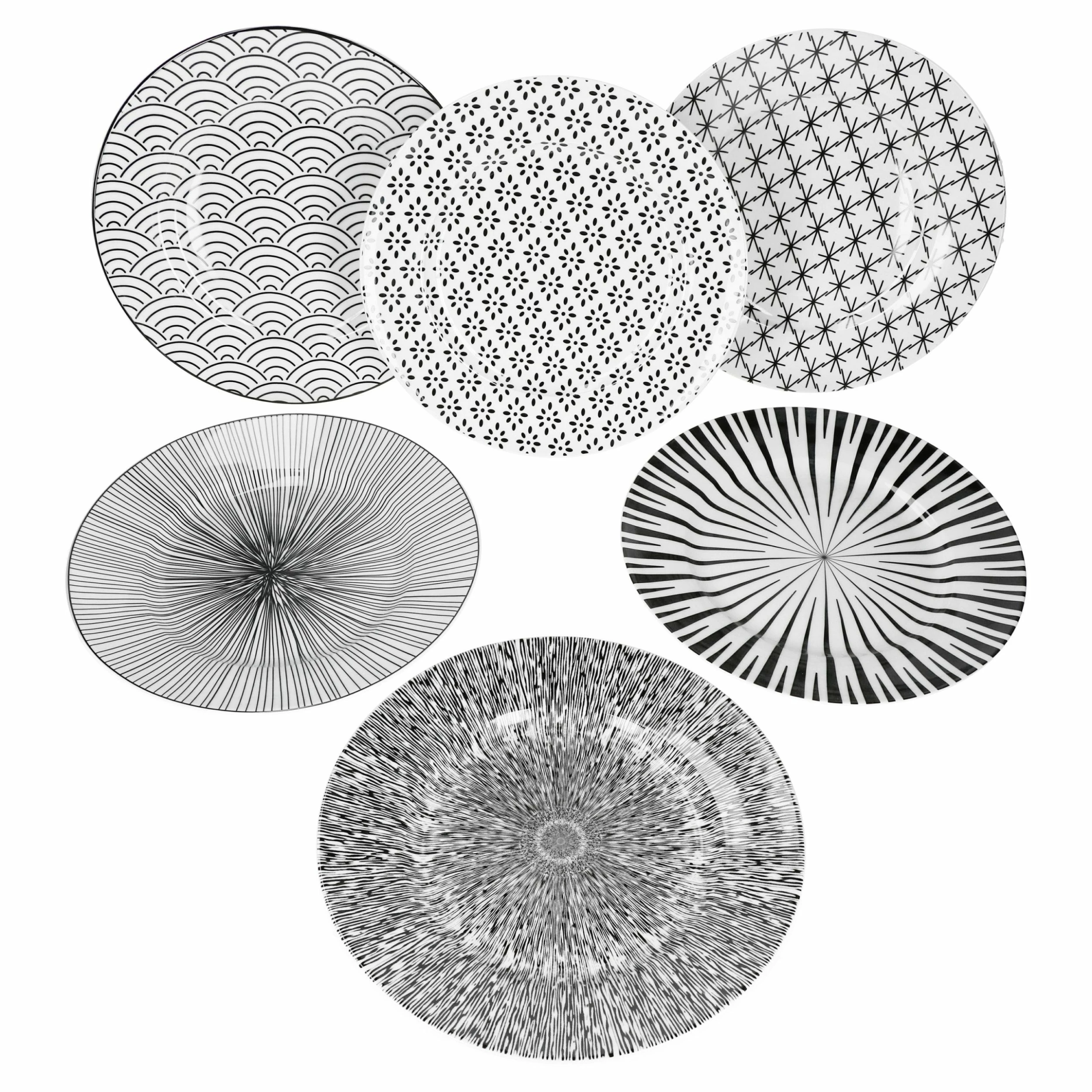 - Das vollflächig dekorierte Geschirr überzeugt mit seinem schwarz/weißen Design und seinen sechs unterschiedlichen Mustern