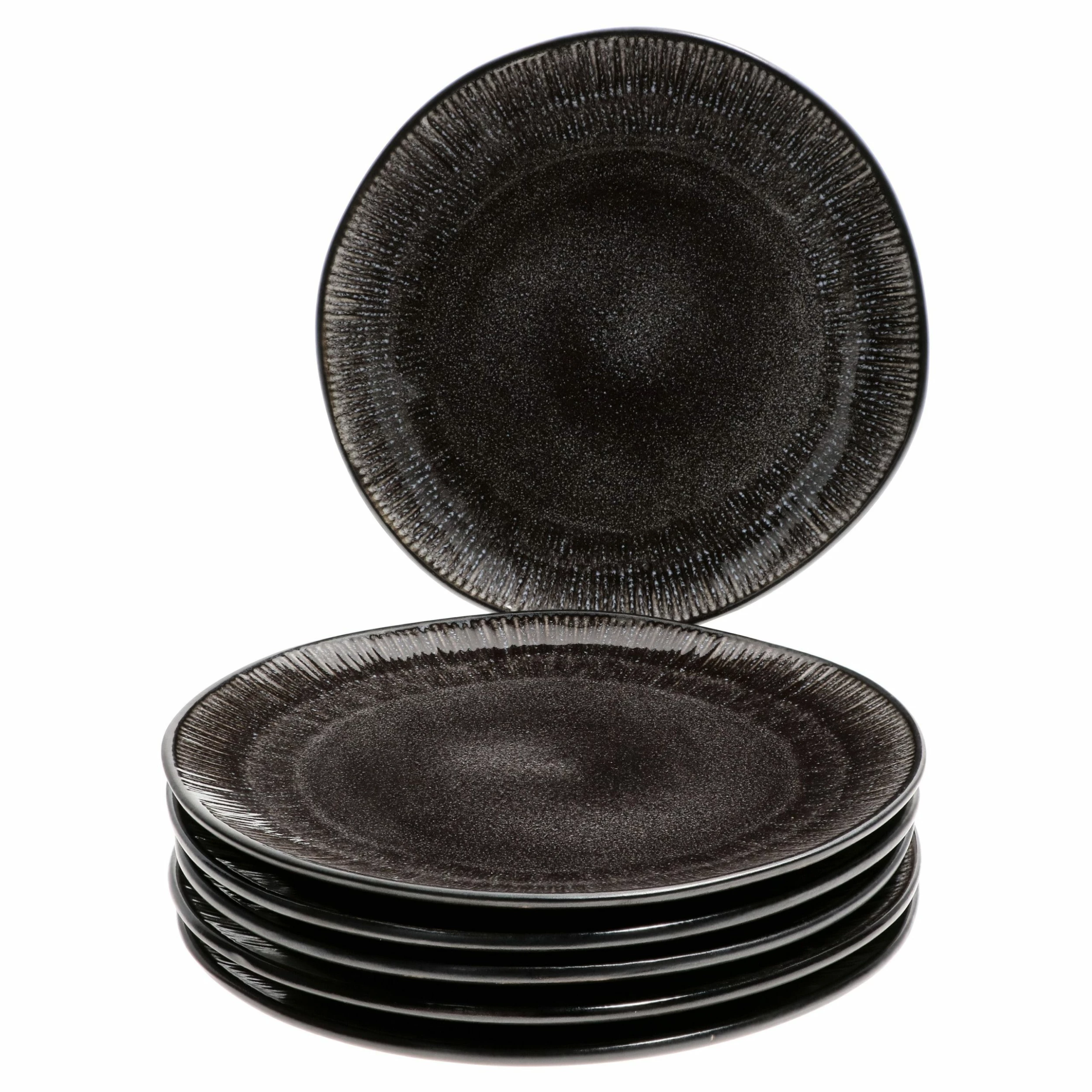 - 6-tlg. Speiseteller Set Reactive Glaze Black handgefertigt