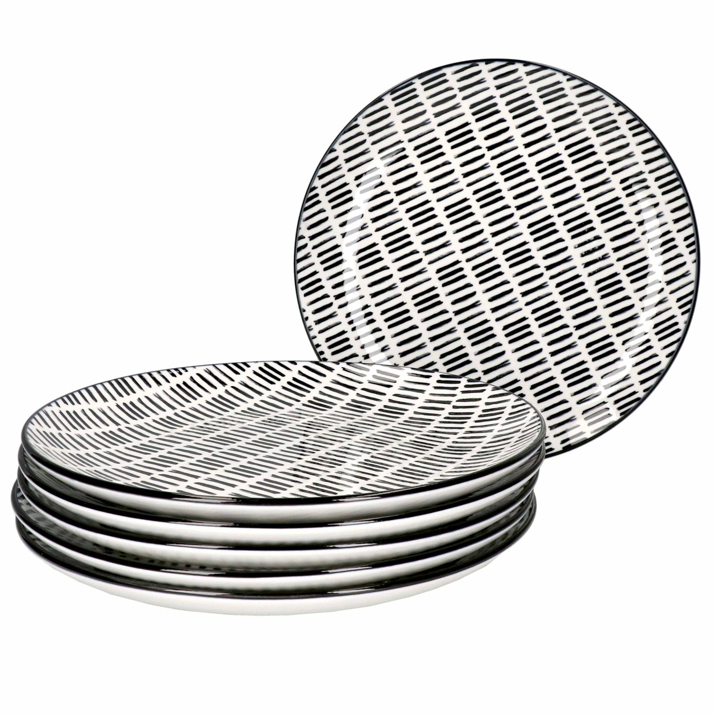 - 6-tlg. Suppenteller Set Jail schwarz-weißes Strich-Dekor