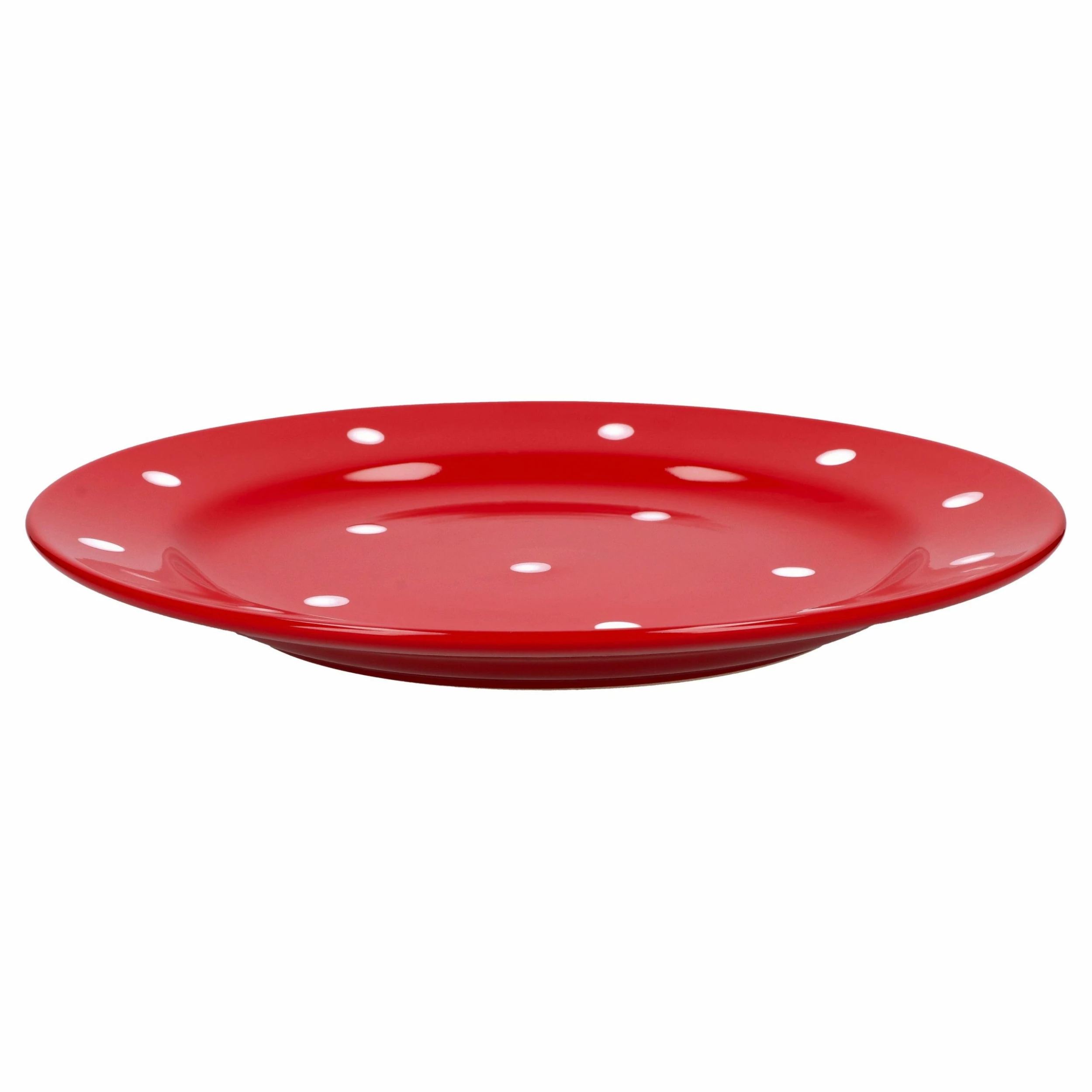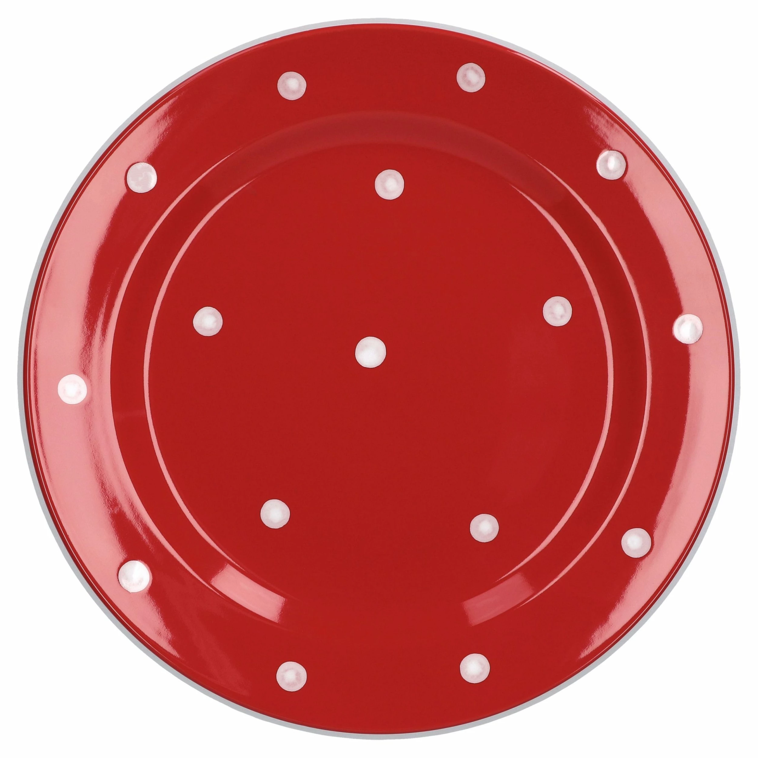 Wunderschöner Steingutteller Emily im Rockabilly Style. Frauen lieben seit Jahrzehnten das tiefe Rot mit weißen Punkten. Ob als Speiseteller für den Hauptgang, als Servierteller am kalten oder warmen Buffet oder als dekorativer Gebäckteller zu Geburtstagen und Weihnachten.