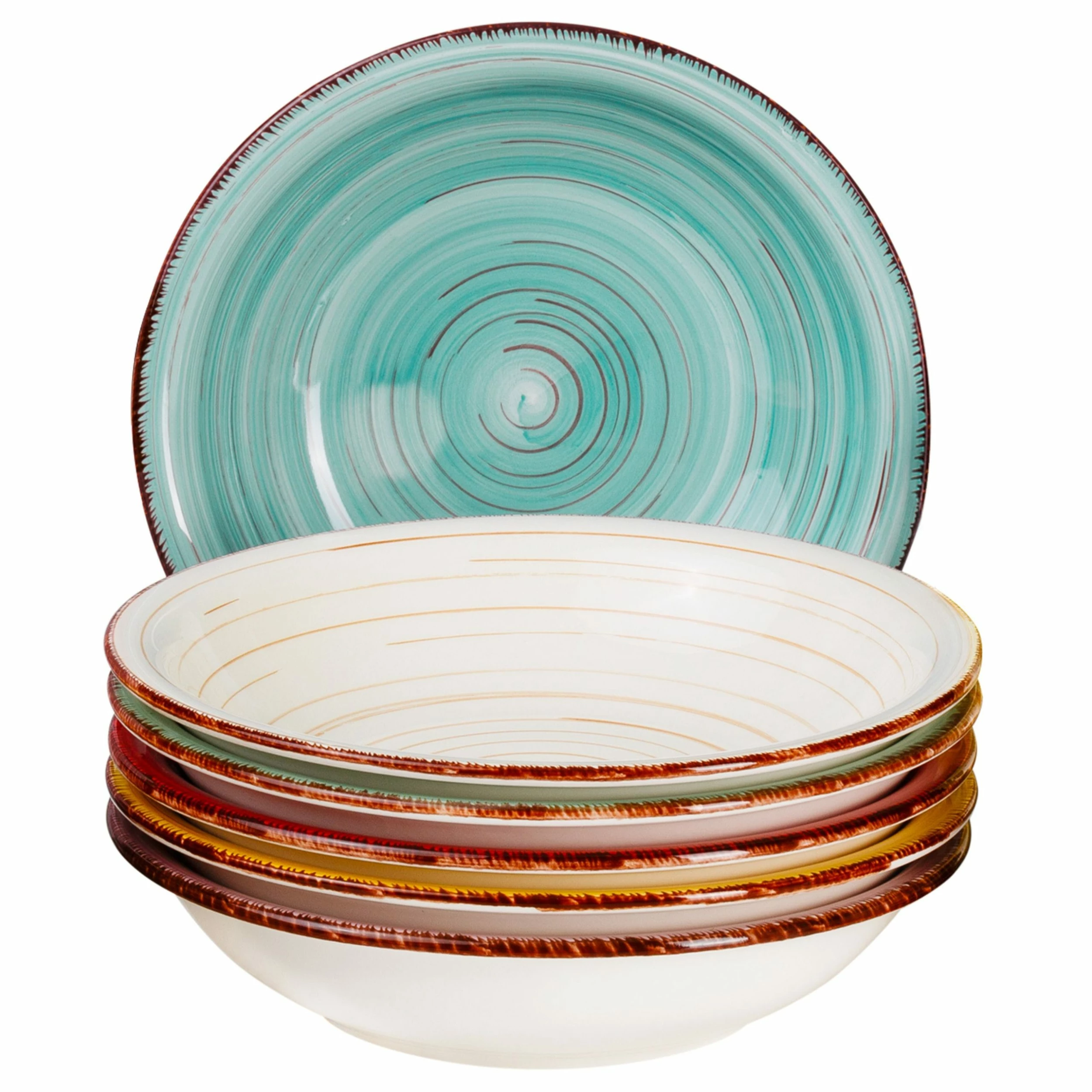 Hochwertiger Suppenteller Silver Night aus dem Hause Van Well. Der tiefe Teller ist die ideale Grundlage für Suppen, Salate und cremige Speisen. Bis zu 700 ml fasst der Servierteller im abstrakten Look. Schwungvolle Linien im Schwarz-Grau-Verlauf zieren stilvoll den 60 mm langen aufsteigenden Rand des Porzellantellers. Der silberne Streifen setzt zusätzlich stilvolle Highlights.