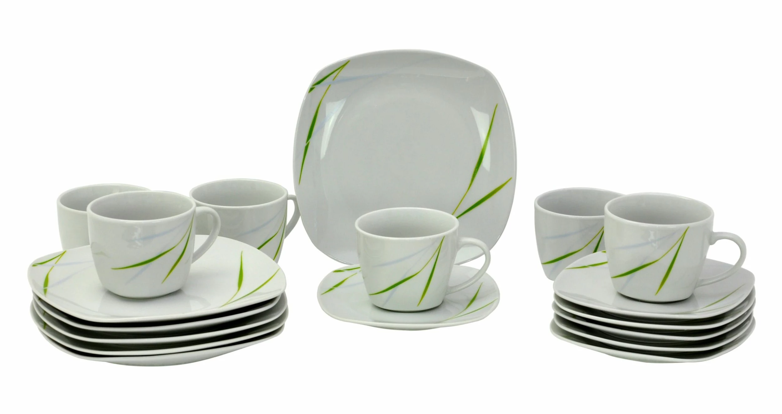 Die leicht eckige Form und das grün / graue Gräserdesign geben dem Kaffeeservice eine ganze besondere Ausstrahlung.