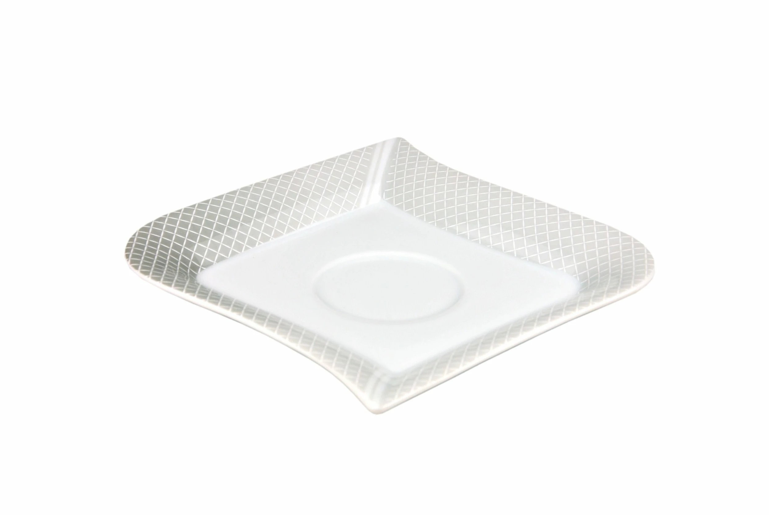 ganz Besonderes – die Untertasse und der Teller sind eckig mit zwei abgerundeten Ecken und zwei