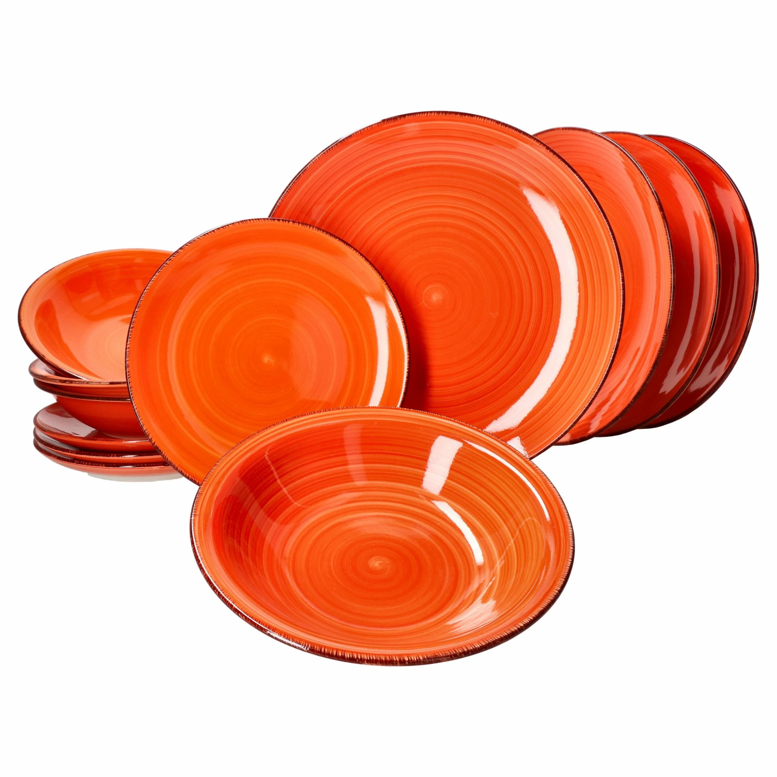 - 12-tlg. Teller Set Uni Orange 4x Speiseteller, 4x Suppenteller & 4x Kuchenteller