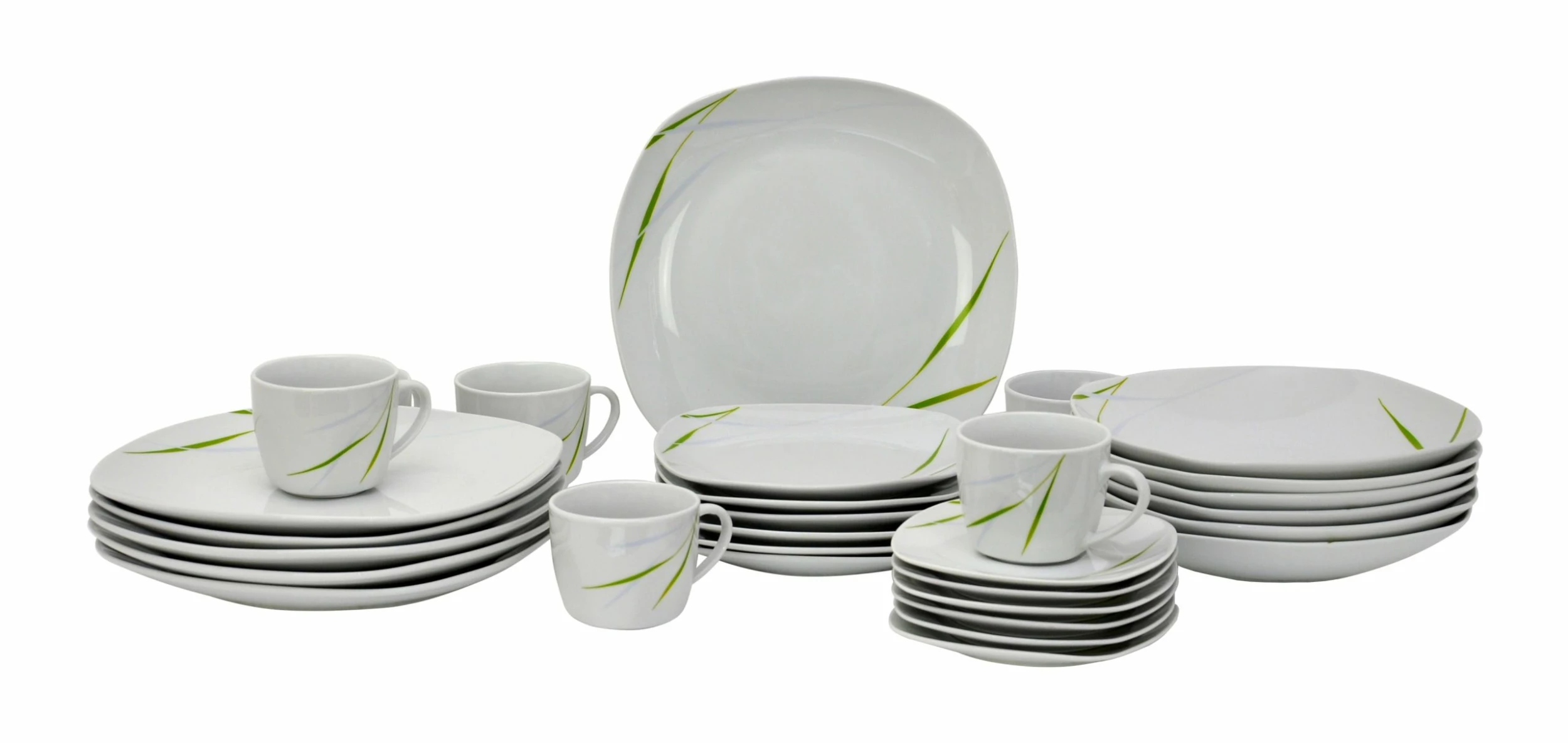 Die leicht eckige Form und das grün / graue Gräserdesign geben dem Tafelservice eine ganze besondere Ausstrahlung.