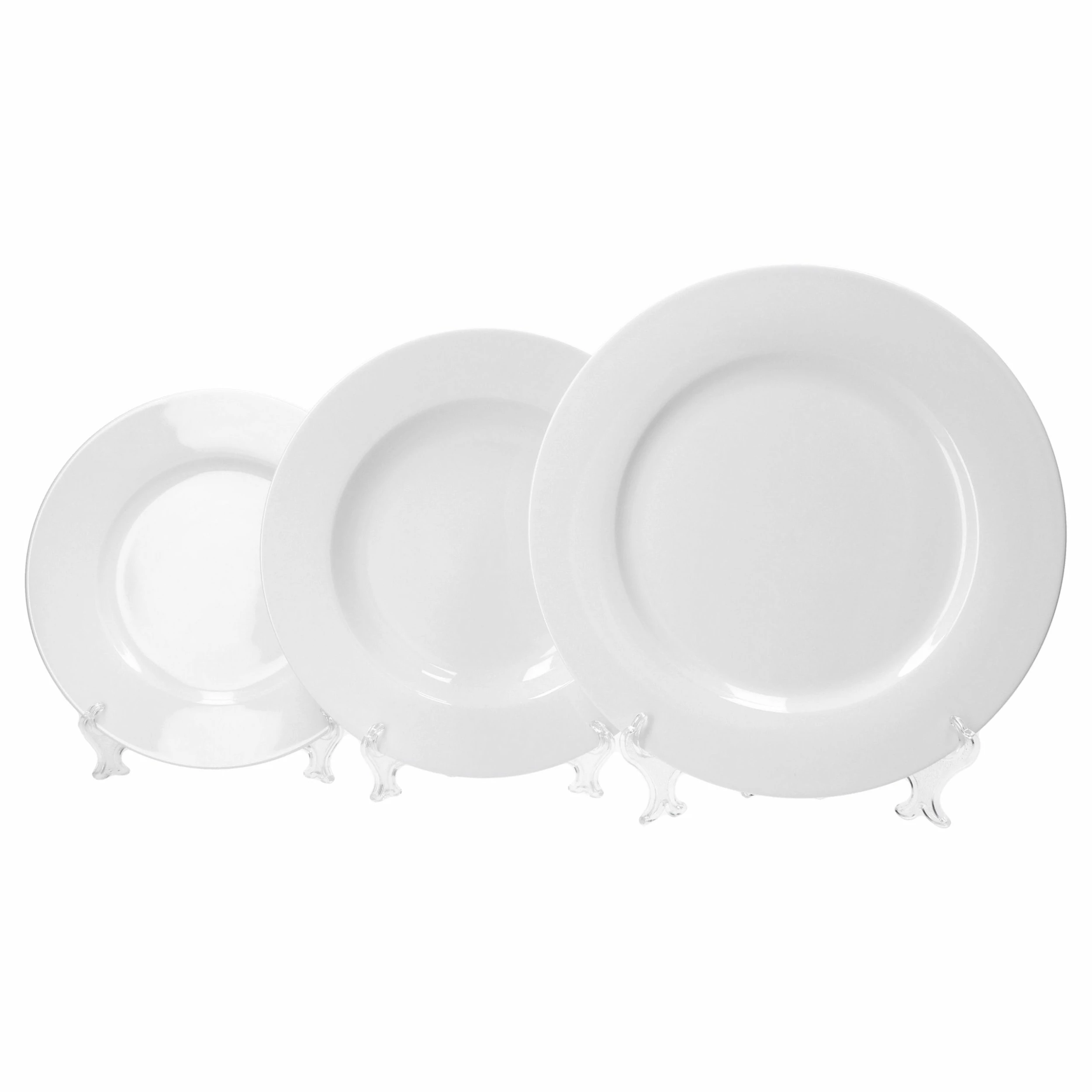 Van Well TREND 18-tlg. Tellerset für 6 Personen, 6 kleine Teller + 6 Speiseteller + 6 Suppenteller im Set, Markenporzellan klassisch weiß, Geschirrset, Frühstücksteller, Dessertteller, Kuchenteller, Servierplatten rund